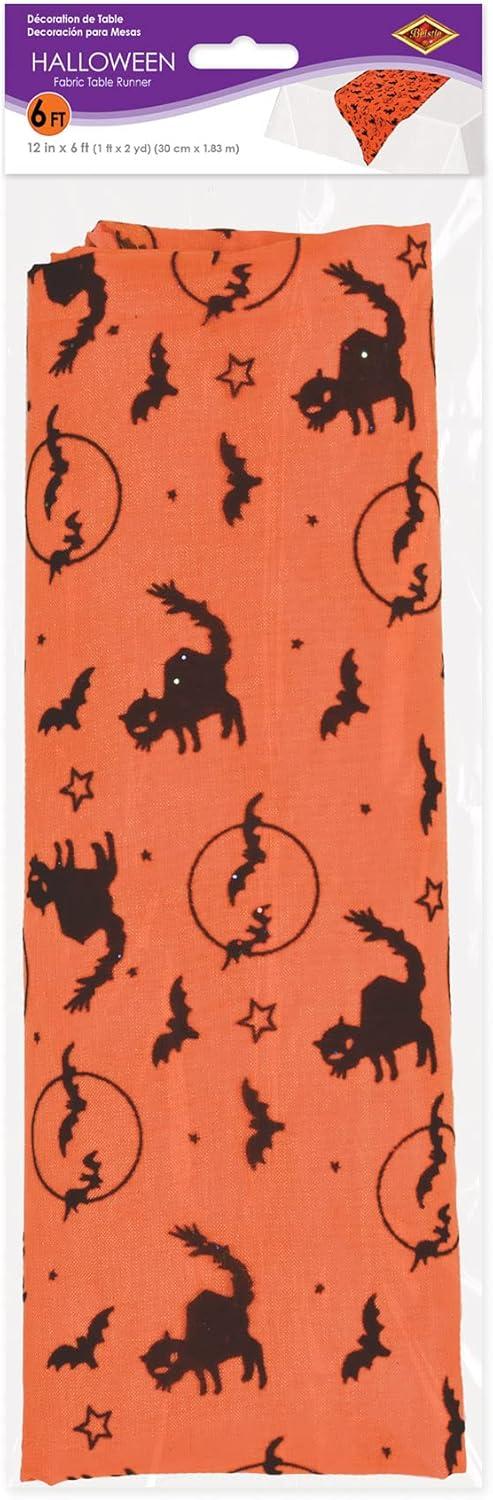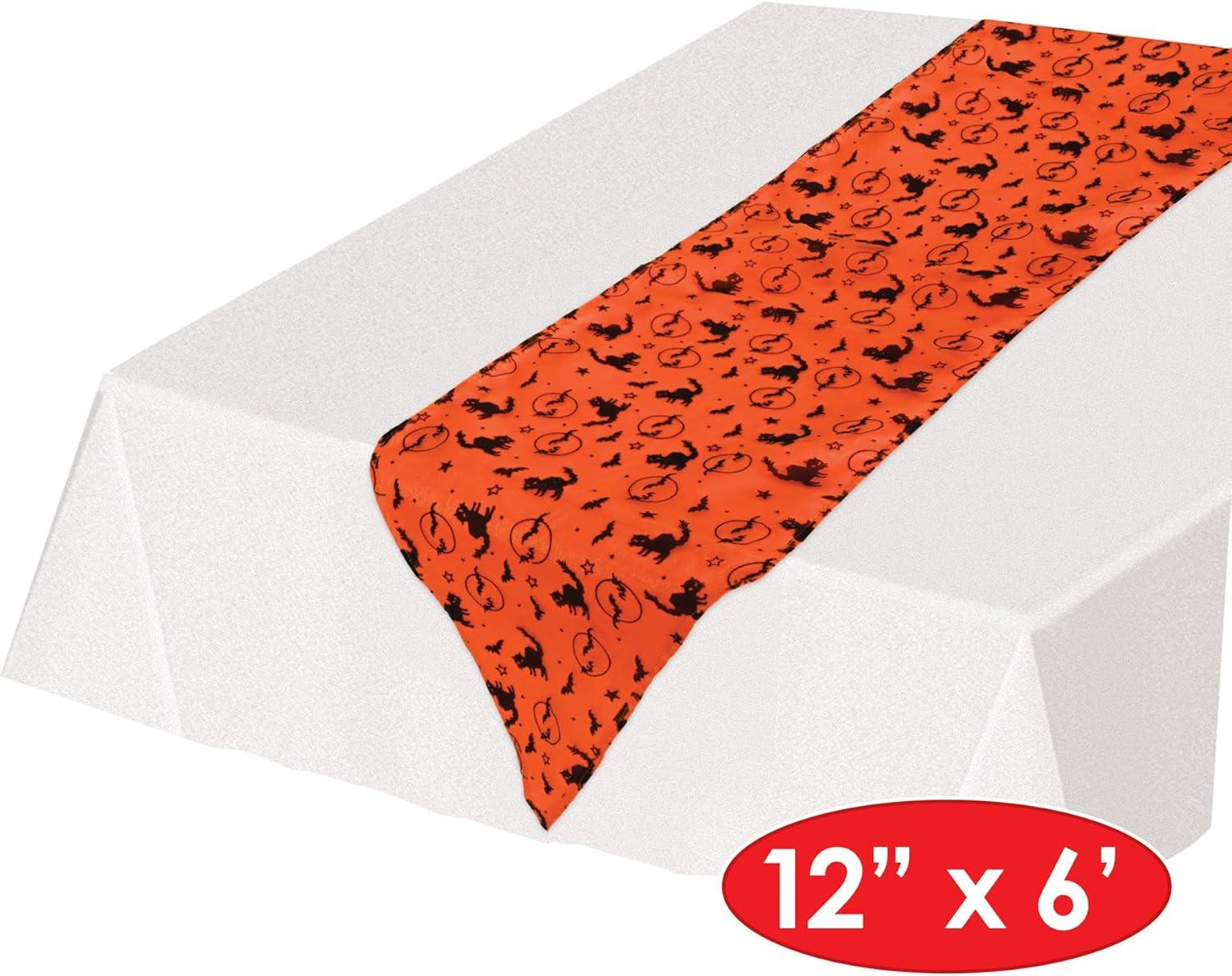 Beistle Fabric Happy Halloween Table Runner, Kitchen Dining Room Holiday Decorations Tableware