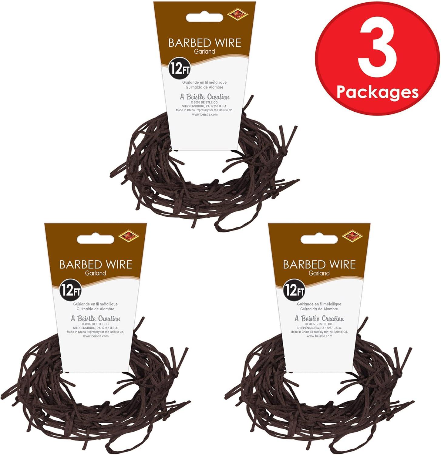 Beistle 3 Piece Fabric Rusty Barbed Wire Garlands for Halloween Party Decorations, Wild West Western Décor