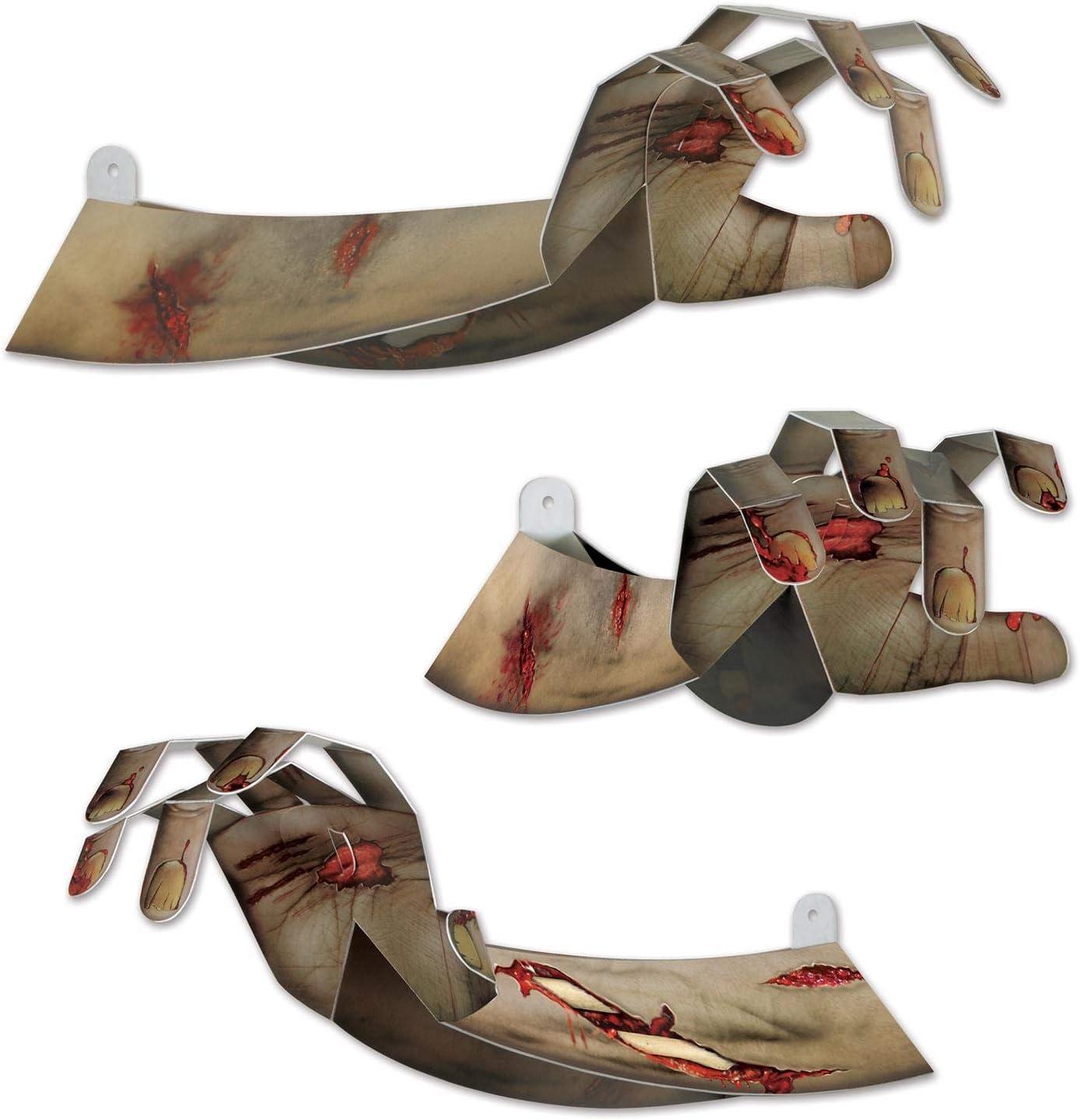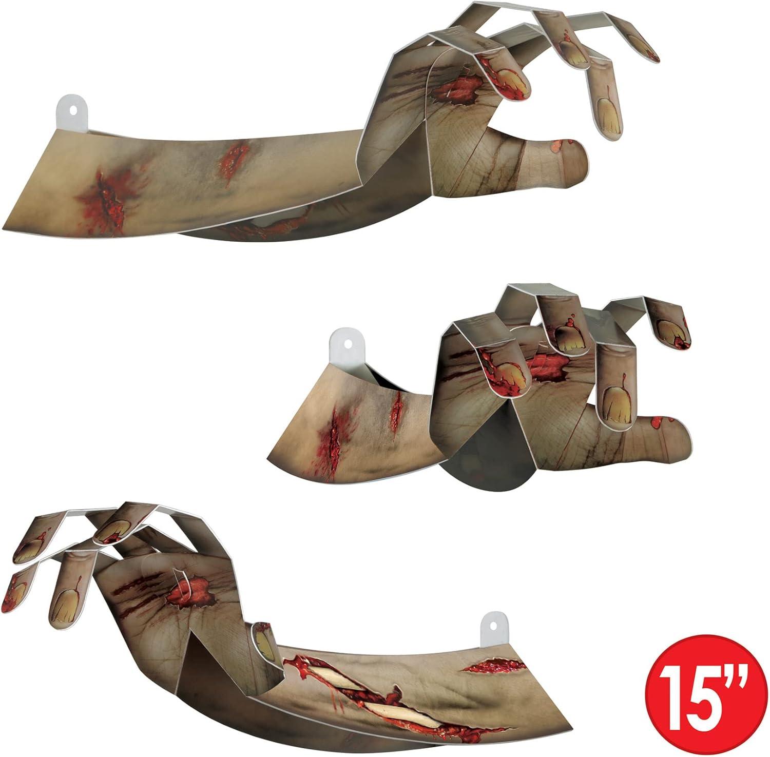 Beistle 8-Piece 3D Zombie Hand Cutouts, Halloween Zombie Hands for Party Décor and Haunted House, Spooky Hanging Decorations for Table or Wall, 15”(3-D Zombie Hands)