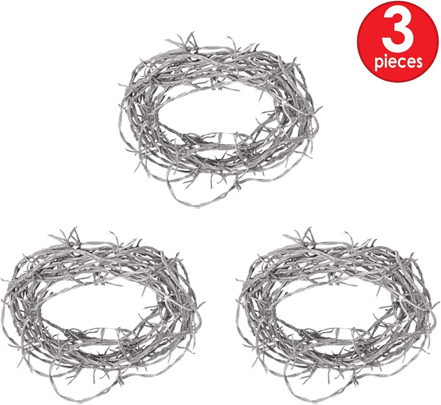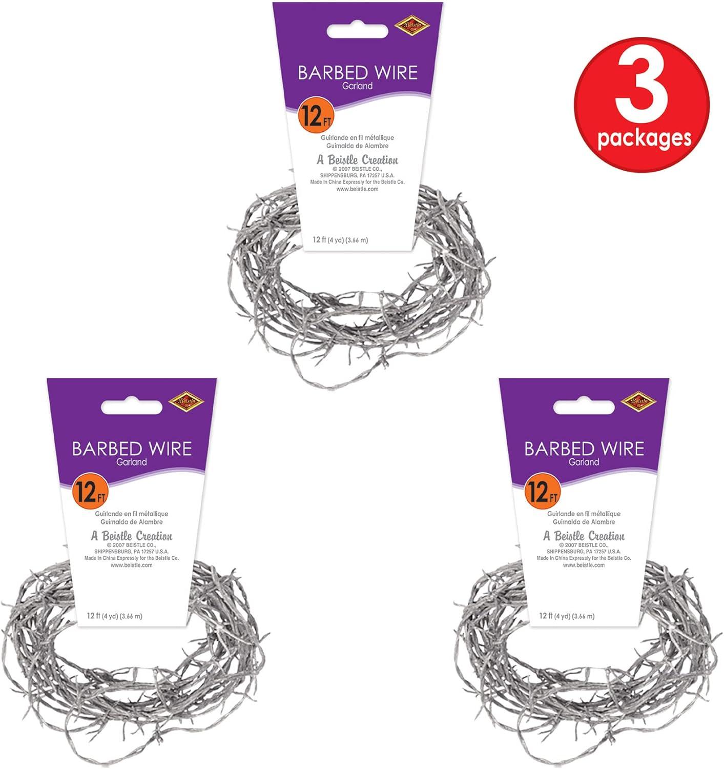 Beistle Silver Barbed Wire Garland 3-Count – 12 Ft Decorative Cord Props for Halloween Parties, Haunted Houses, Zombie Zones, Jailhouse Scenes, Dungeon Decor and Western-Themed Events