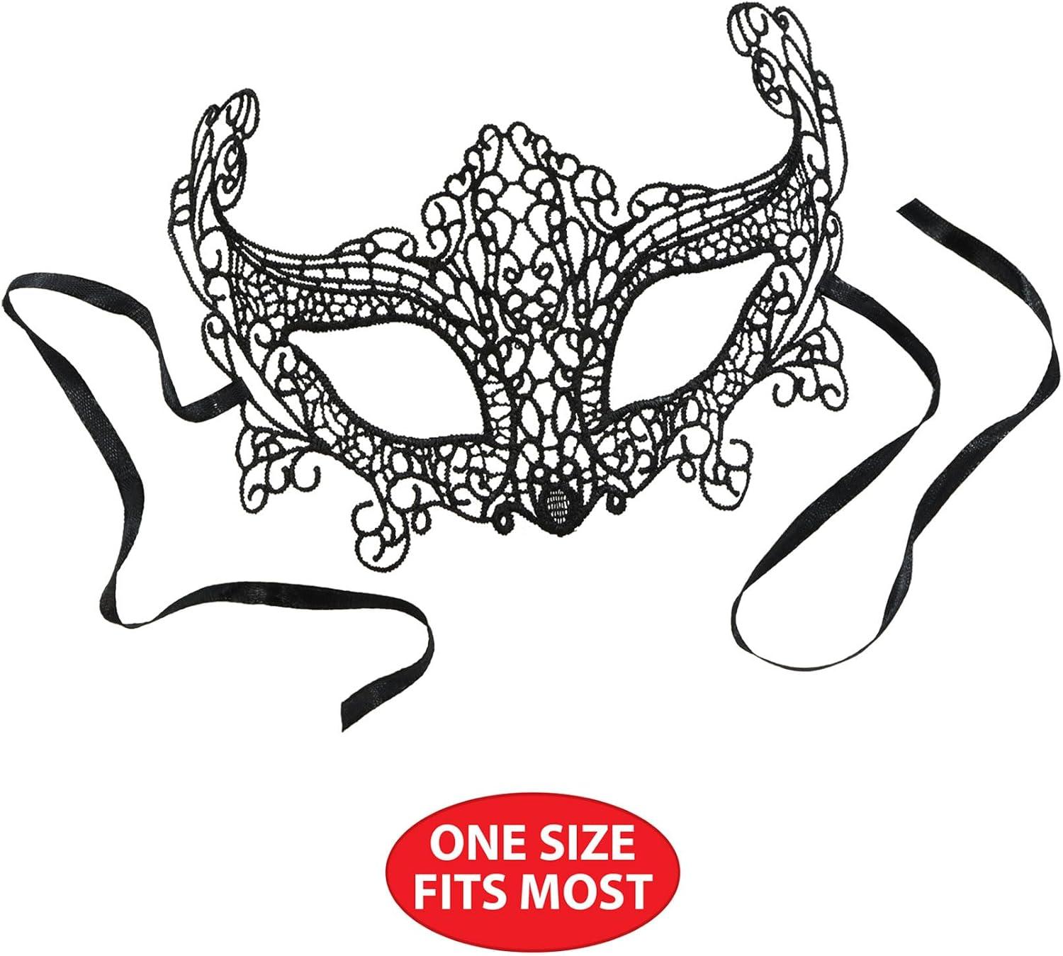 Beistle 3-Pack Lace Mask, Black Halloween Costume Accessory for Masquerade with Ribbon Ties, Phantom Face Covering for Parties & Mardi Gras, One Size