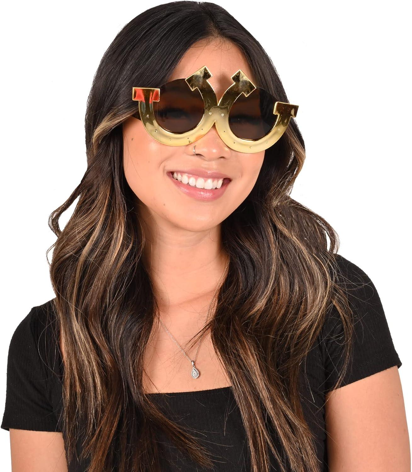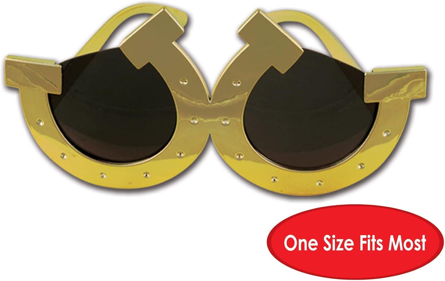 Beistle Plastic Horseshoe Fun Novelty Party Glasses For Western Theme Photo(Gold/Black)