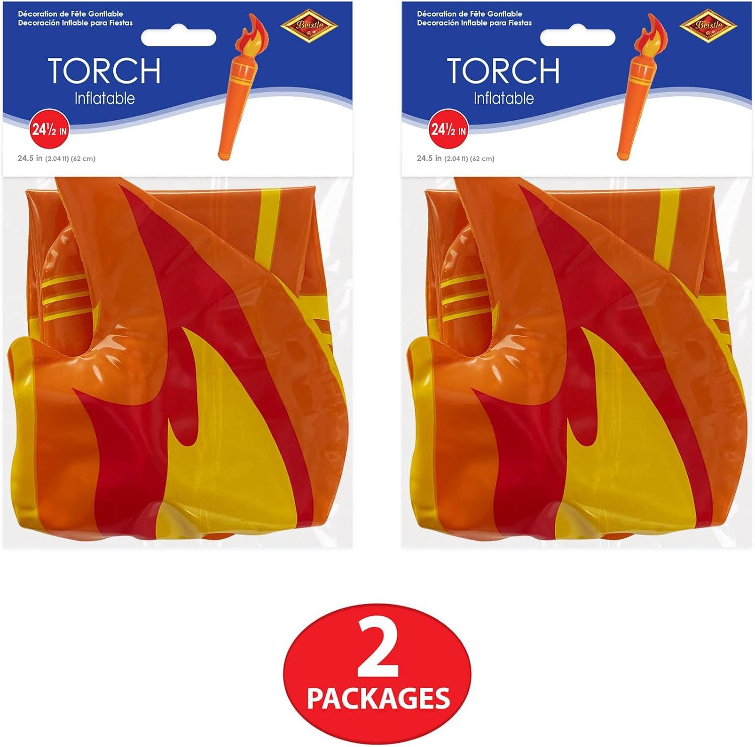 Beistle 2 Piece 24.5” Inflatable Flame Torches for Luau Theme and International Sports Parties