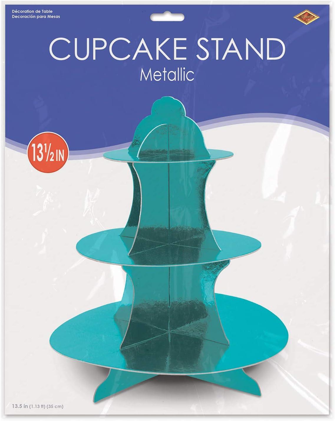 Beistle 2 Piece Durable Boardstock 3-Tier Cupcake Stands for Birthday Parties, Wedding Reception Centerpieces, Halloween Dessert Holders(Metallic Cupcake Stand – Turquoise (1 Pack))