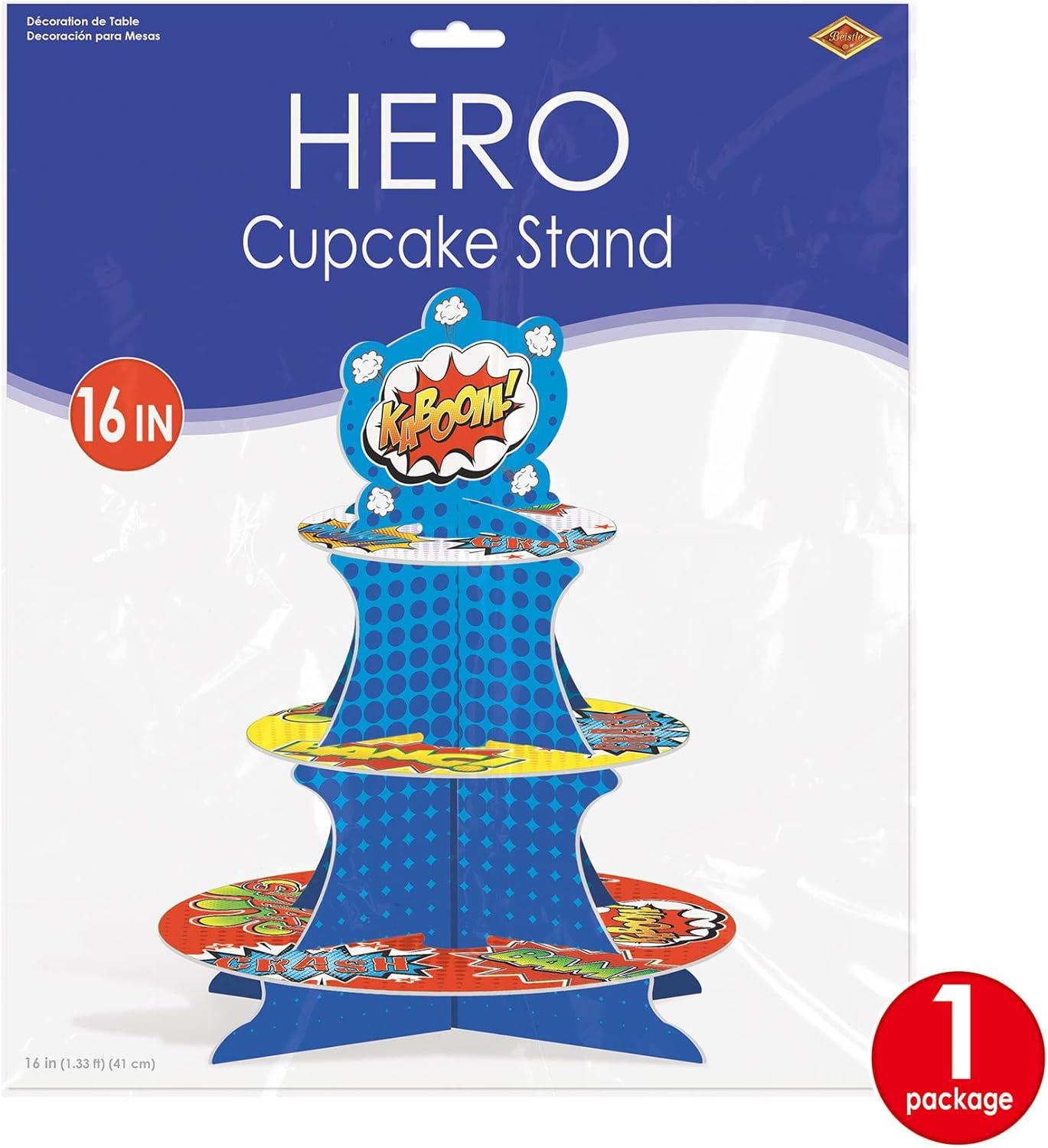 Beistle 2 Piece Hero Party Supplies Durable Cupcake Stands And Dessert Holders – Comic Book Theme Birthday Party Centerpiece, Multicolored, 16(Hero Cupcake Stand – 1 Pack)
