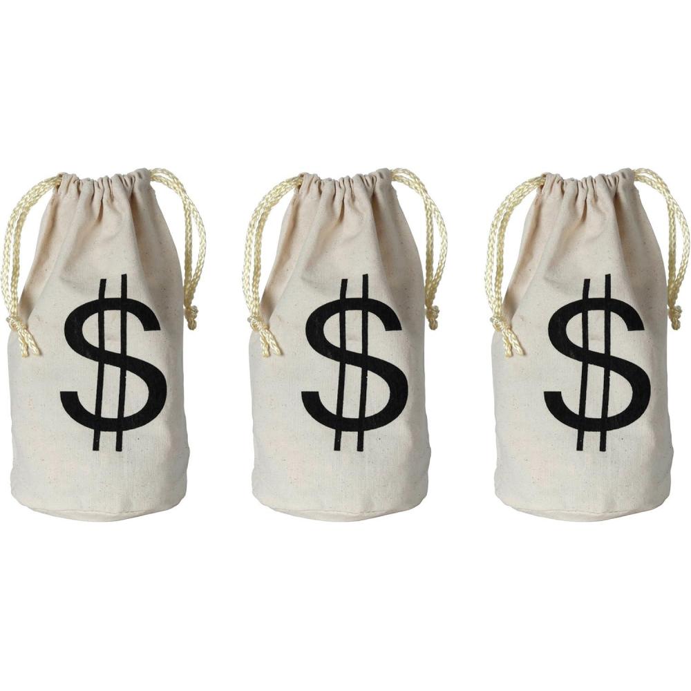 Cash in on the fun with the Beistle “$” Bag 3-Pack! These classic money bag props are made from natural-colored fabric and boldly printed on both sides with a black dollar sign—instantly recognizable and perfect for a variety of party themes and costumes. Each bag includes a matching drawstring cord for a quick cinch-and-go closure, adding to their vintage loot sack appeal.