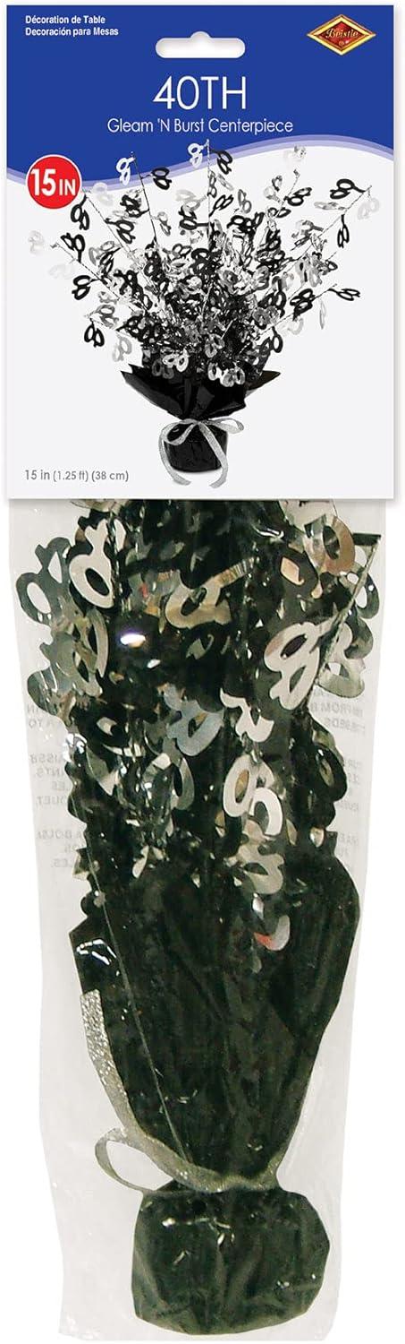 Celebrate turning 30 or marking a special 30th anniversary with the Beistle “30” Gleam 'N Burst Centerpiece. Standing 15 inches tall, this stunning decoration features shimmering metallic “30” icons in bold black and silver, making it perfect for 30th birthdays, anniversaries, or milestone achievements. The weighted base, wrapped in shiny black foil with a coordinating silver ribbon, ensures stability while adding an elegant touch to your décor. Fan out the wire strands to create a fuller, eye-catching display that enhances any table or mantel. Crafted from durable materials, this centerpiece is reusable for multiple occasions. Whether placed on dining tables, gift tables, or event displays, it’s the perfect focal point to honor this special milestone.