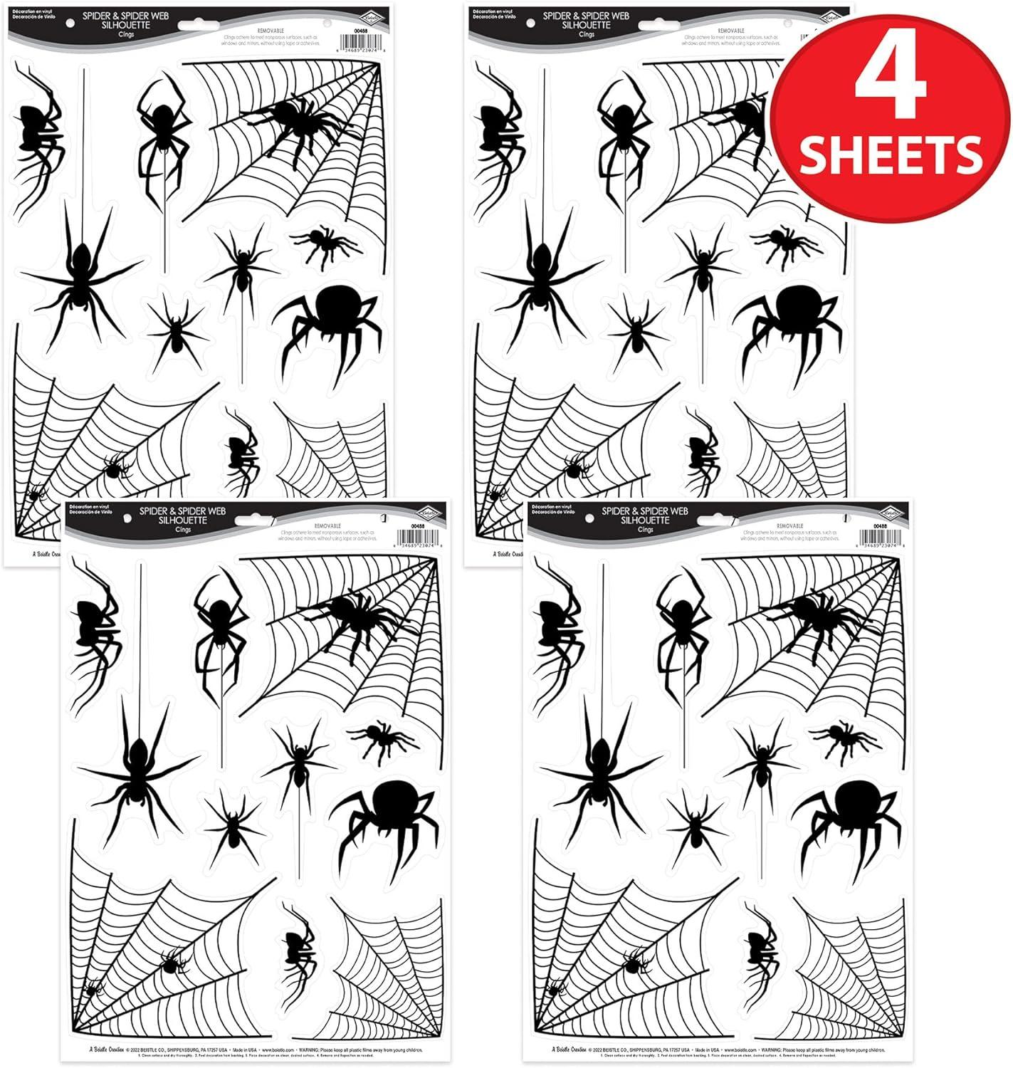 Beistle 4 Sheets (44 Pieces) Black Spider & Web Window Clings – Creepy And Realistic Looking Halloween Decorations For Spooking Up Your Home, Made In USA Since 1900