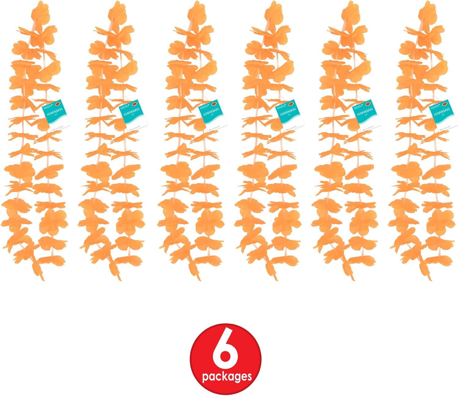 Beistle 6 Piece 40″ Polyester Orange Floral Hawaiian Leis, Tropical Flower Luau Party Accessories And Favors, Celebrating With You Since 1900