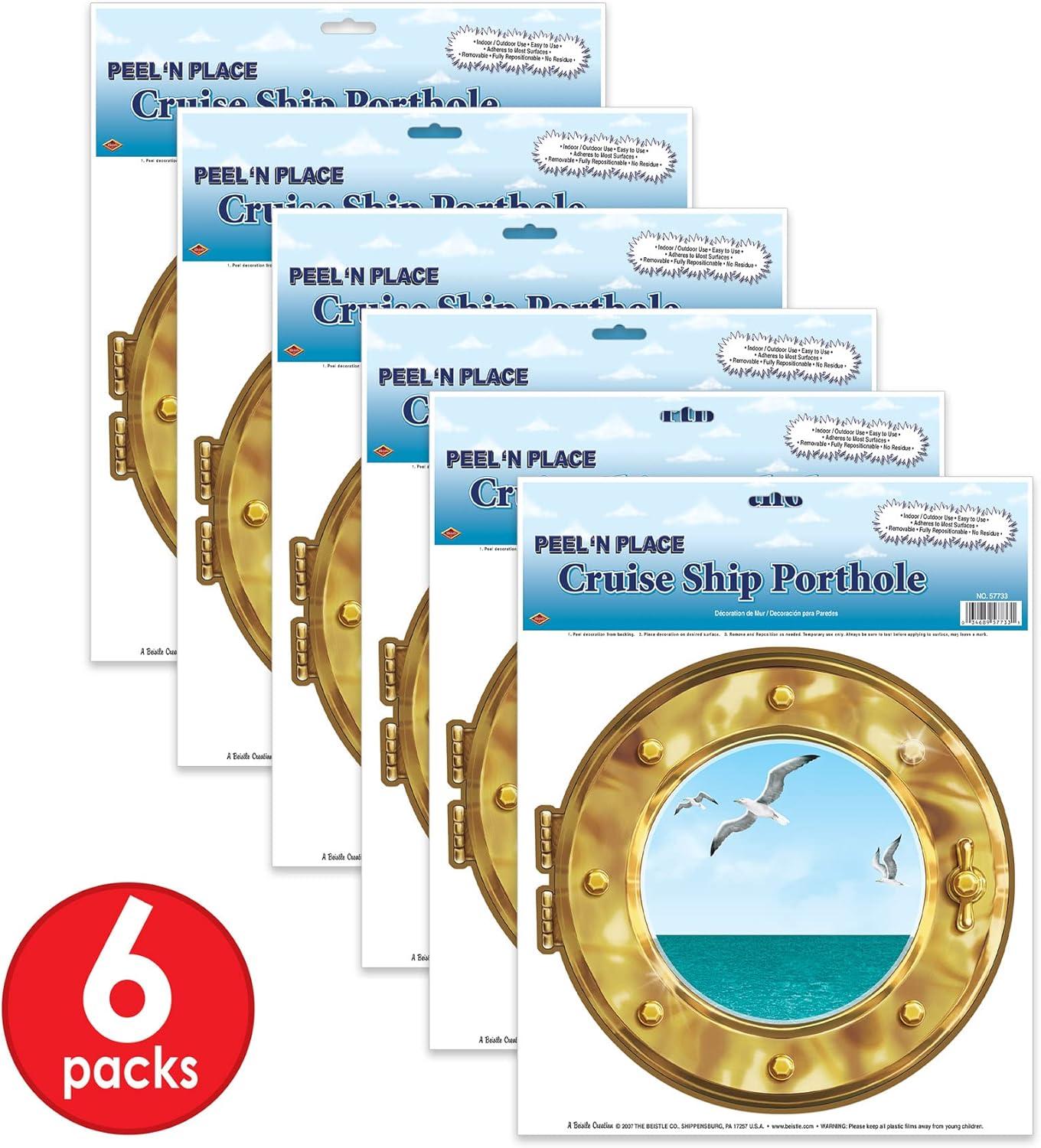 Beistle 6 Piece Cruise Ship Porthole Vinyl Plastic Peel ‘N Place Nautical Wall Decorations For Bon Voyage Party Supplies