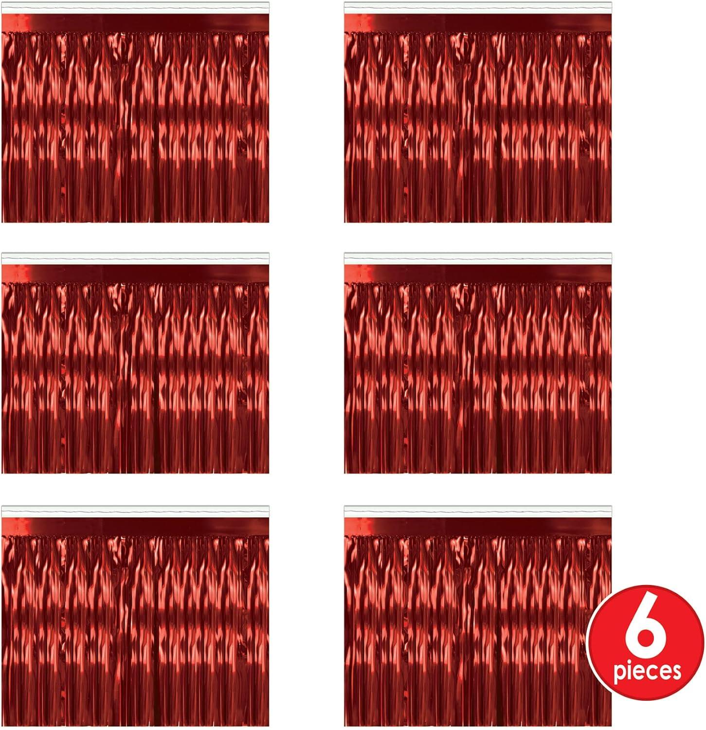 Beistle 6 Piece Red Metallic Plastic Fringe Drapes Banners For Parade Floats Tinsel Curtains Photo Booth Prop Backdrops Birthday Party Supplies Christmas Decorations, 15″ x 10′(Red)