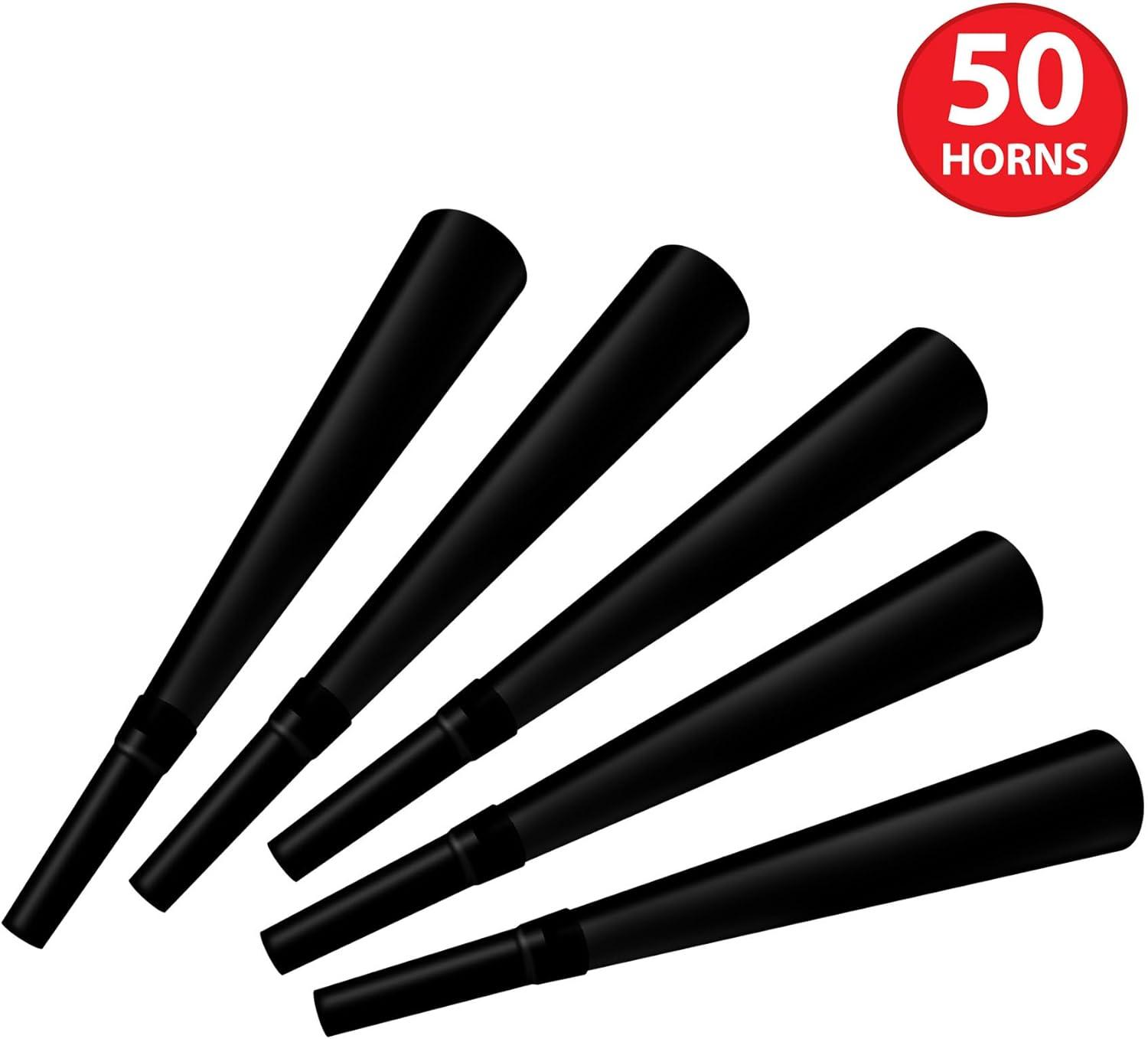 Beistle Blackout New Year Assortment Party Pack Hi-Hats, 25 Plumed Tiaras, and 50 Foil 9” Horns-Elegant Favors and Accessories for NYE Celebrations, One Size, Black/Silver