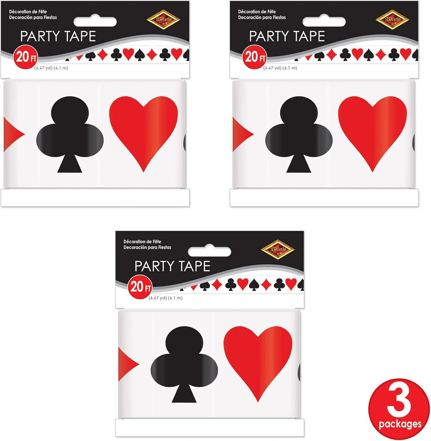 Beistle Casino Card Suit Party Tape, 3″ x 20′ -1 Pc, One Size, Red/Black/White(3 piece)