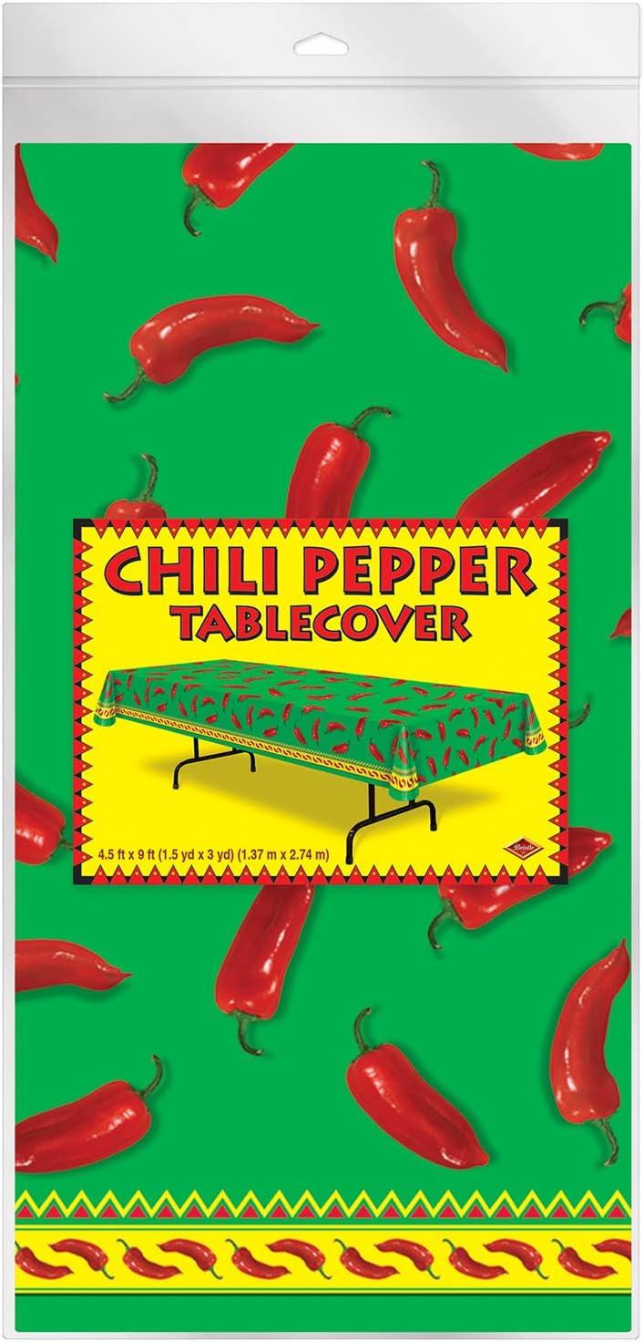 Beistle Chili Pepper Tablecover, 54” x 108” – Plastic Table Cloth, Rectangular Tablecloth, Table Covers for Party, Cinco De Mayo Tablecloth, Fiesta Party Decorations, Cinco De Mayo Decorations