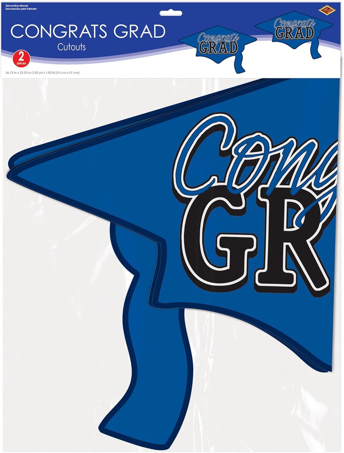 Beistle Red Congrats Grad Cutouts, 2-Count, Large Graduation Cap Decorations for Celebrations, High School and College Academic Achievement Party Supplies, 22.25” x 36.75”(Blue)