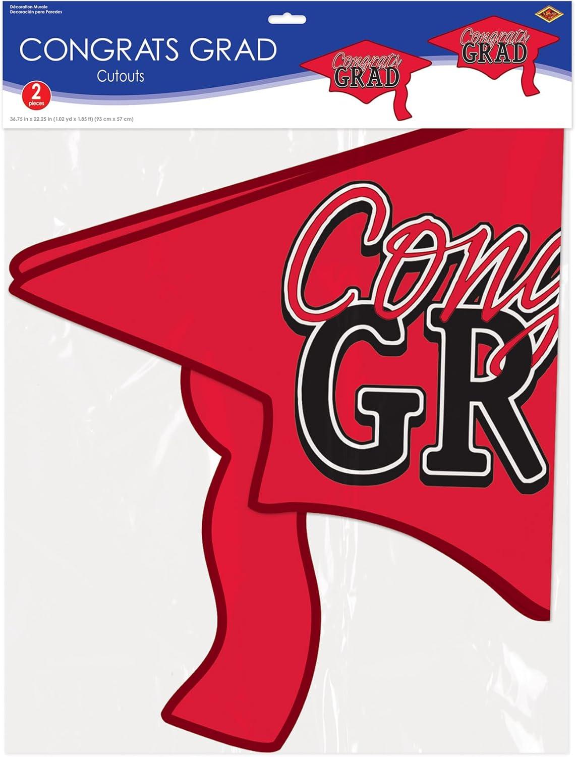 Beistle Red Congrats Grad Cutouts, 2-Count, Large Graduation Cap Decorations for Celebrations, High School and College Academic Achievement Party Supplies, 22.25” x 36.75”(Red)