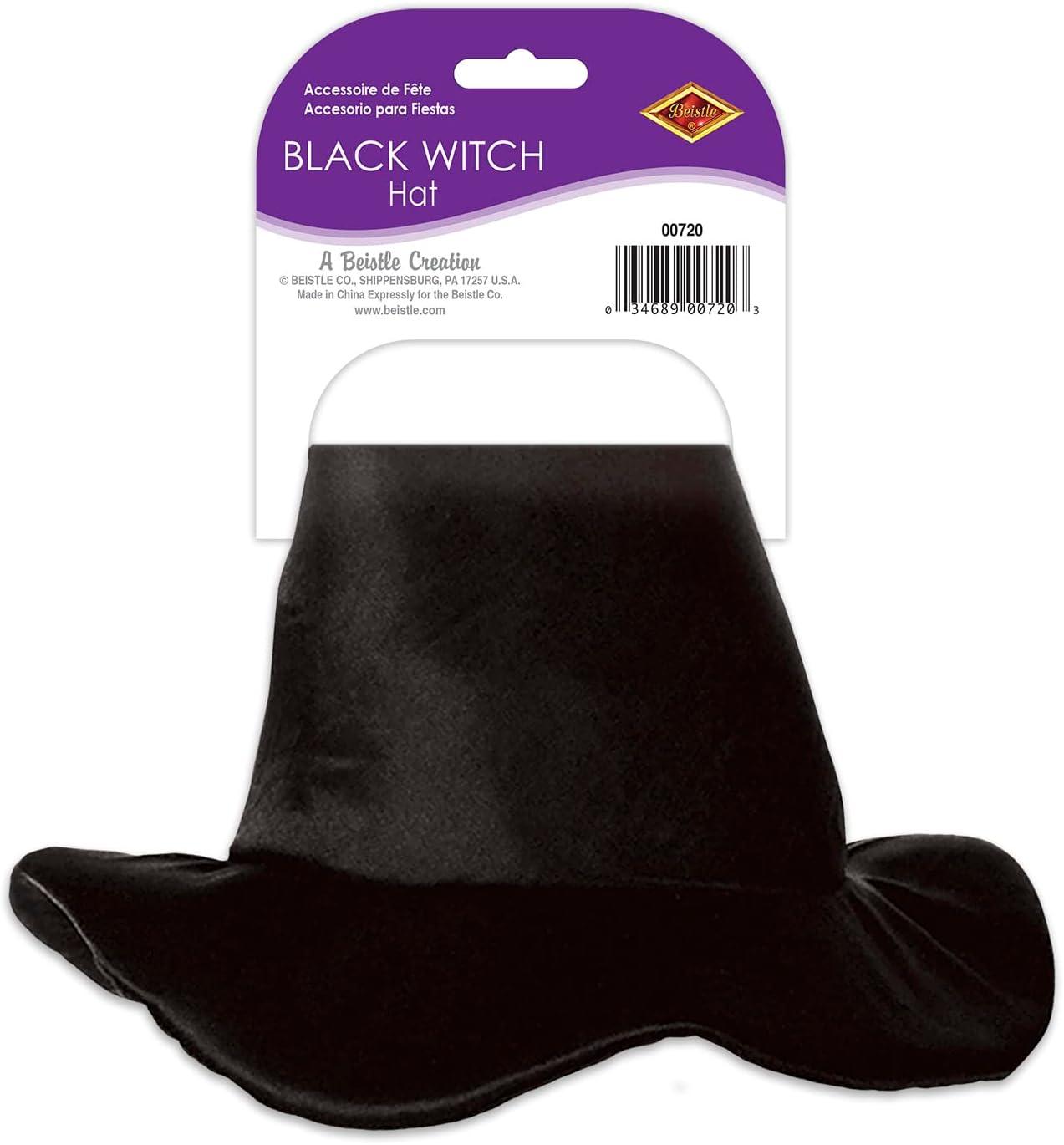 Beistle Satin-Soft Black Witch Hat Halloween Costume Accessory Satin-Covered Foam for Comfortable Wear Classic Pointed Design for Witches Wizards Cosplay Trick-or-Treat
