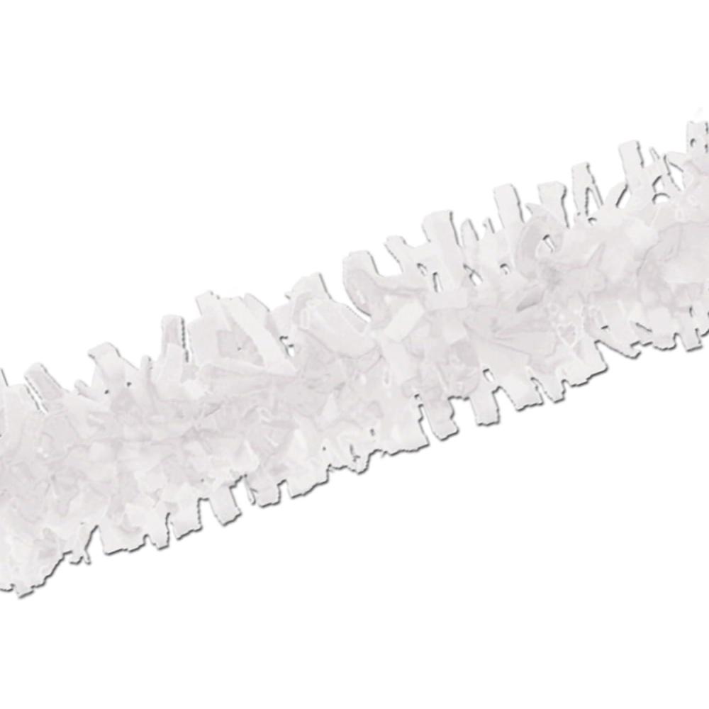 Beistle 55599-W Packaged Tissue Festooning. One package of the tissue festooning includes 25 feet. This is a great way to add a little extra touch to around a table. You can also use this tissue festooning to create and make your own piñata.