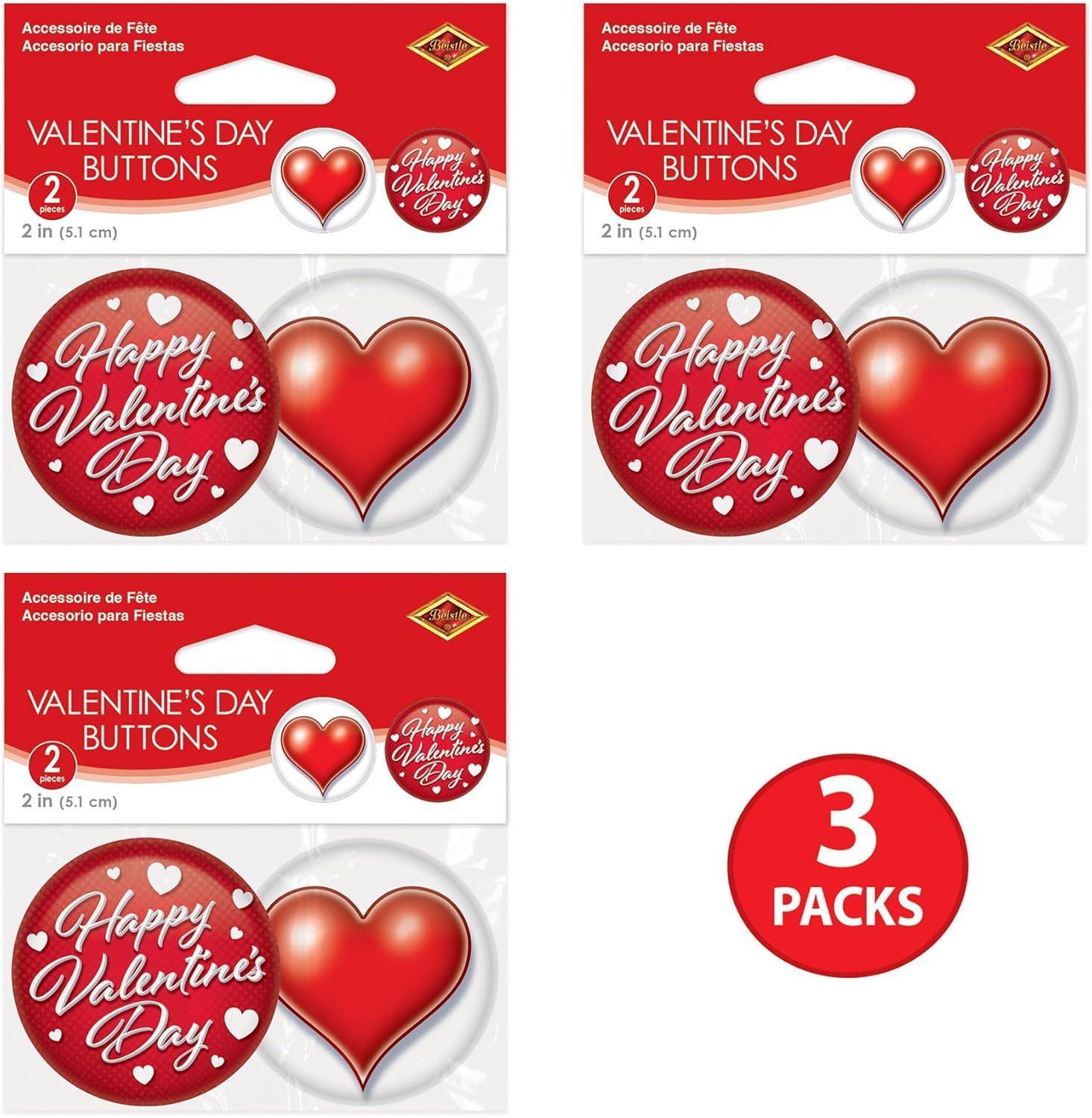 Beistle Valentine’s Day Buttons – 6-Pack Red and White Round Pins with Heart and Script Designs for V-Day Accessories for Handouts, Love Themed Events, Rewards, Dances, or Office Gifting, 2”