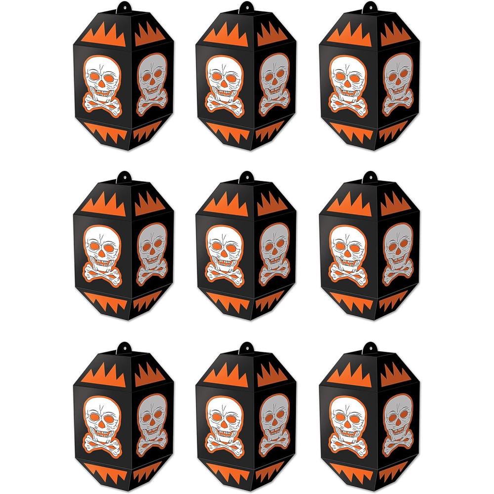Beistle Vintage Halloween Skull Paper Lanterns 9 Piece, 7″, Black/Orange/White